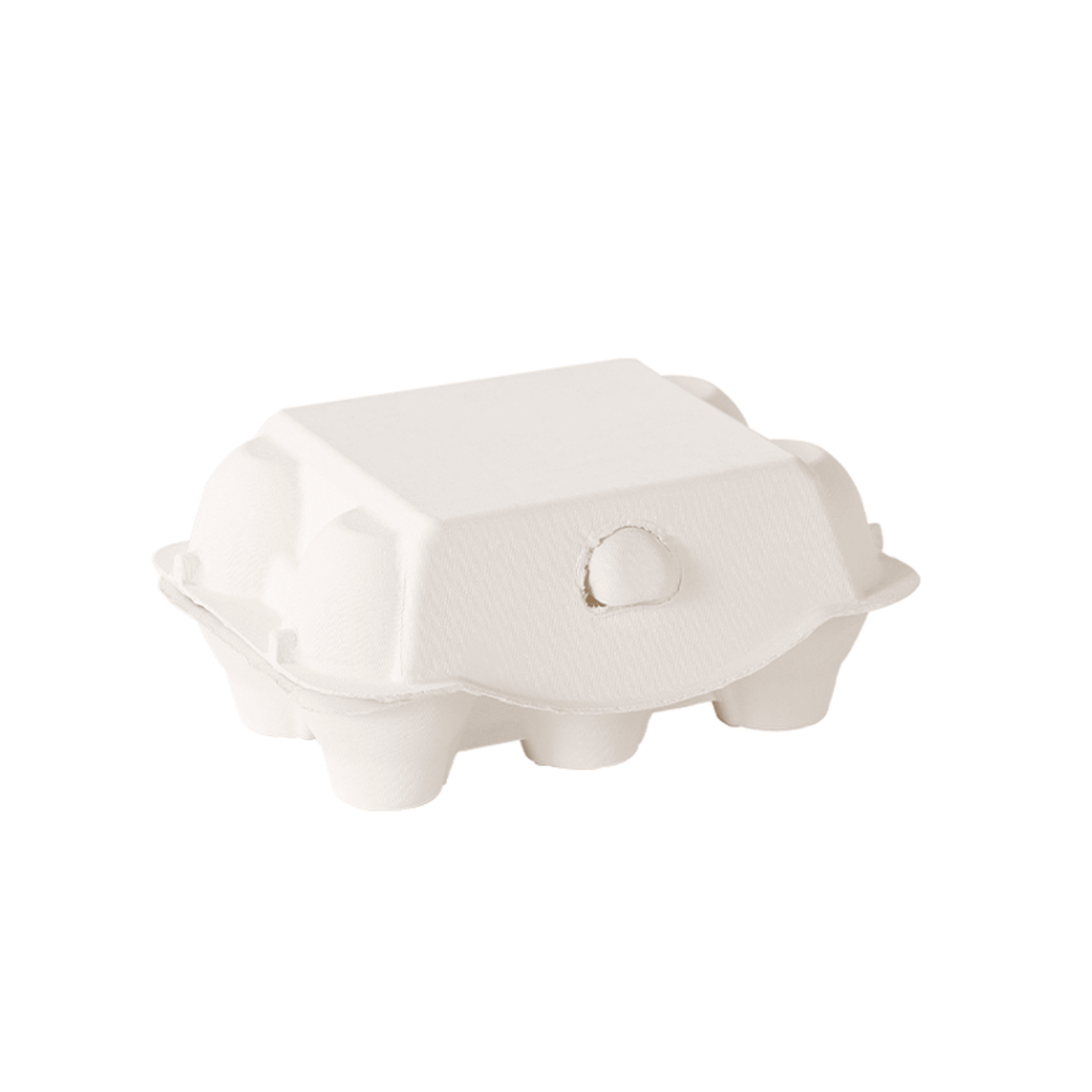 Smidig och helvit äggkartong för 6 ägg som kombinerar skydd och funktion – perfekt för mindre förpackningar och flexibel användning.