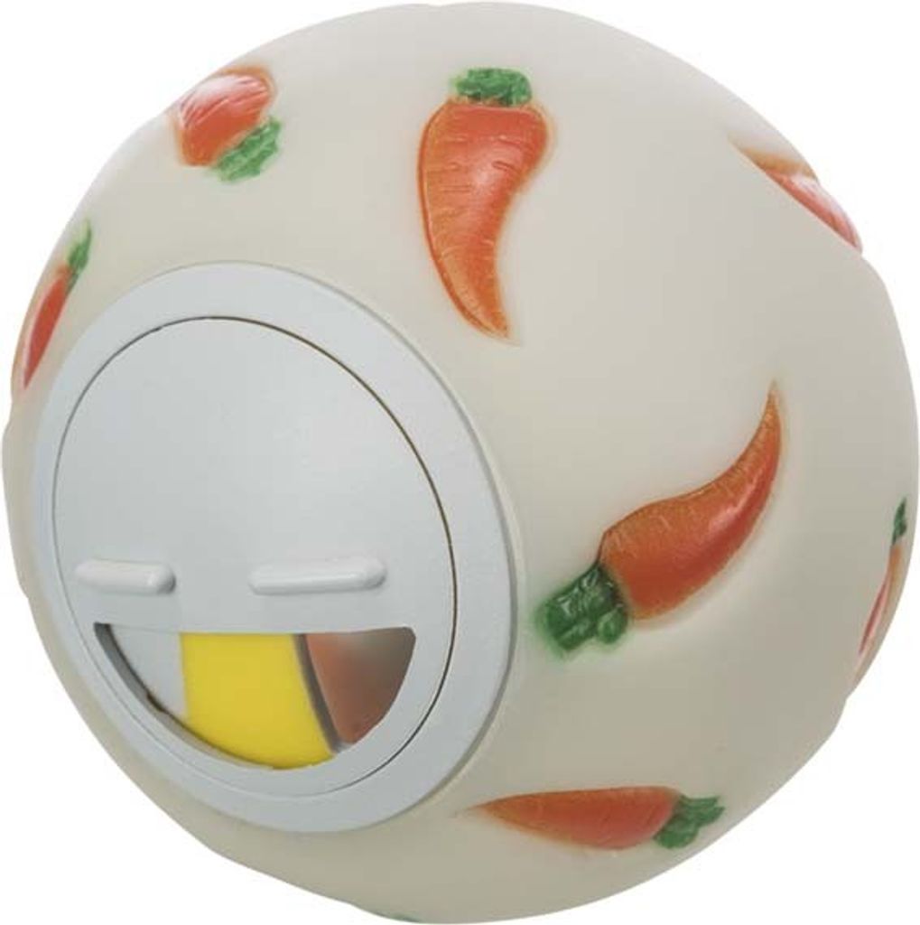 Godisboll i hård plast för kaniner och små gnagare som håller ditt husdjur sysselsatt en längre tid. När bollen rullas så trillar godiset ut, kombinerar lek och fodertillskott på ett kul sätt. Justerbar öppning. Lätt att rengöra.