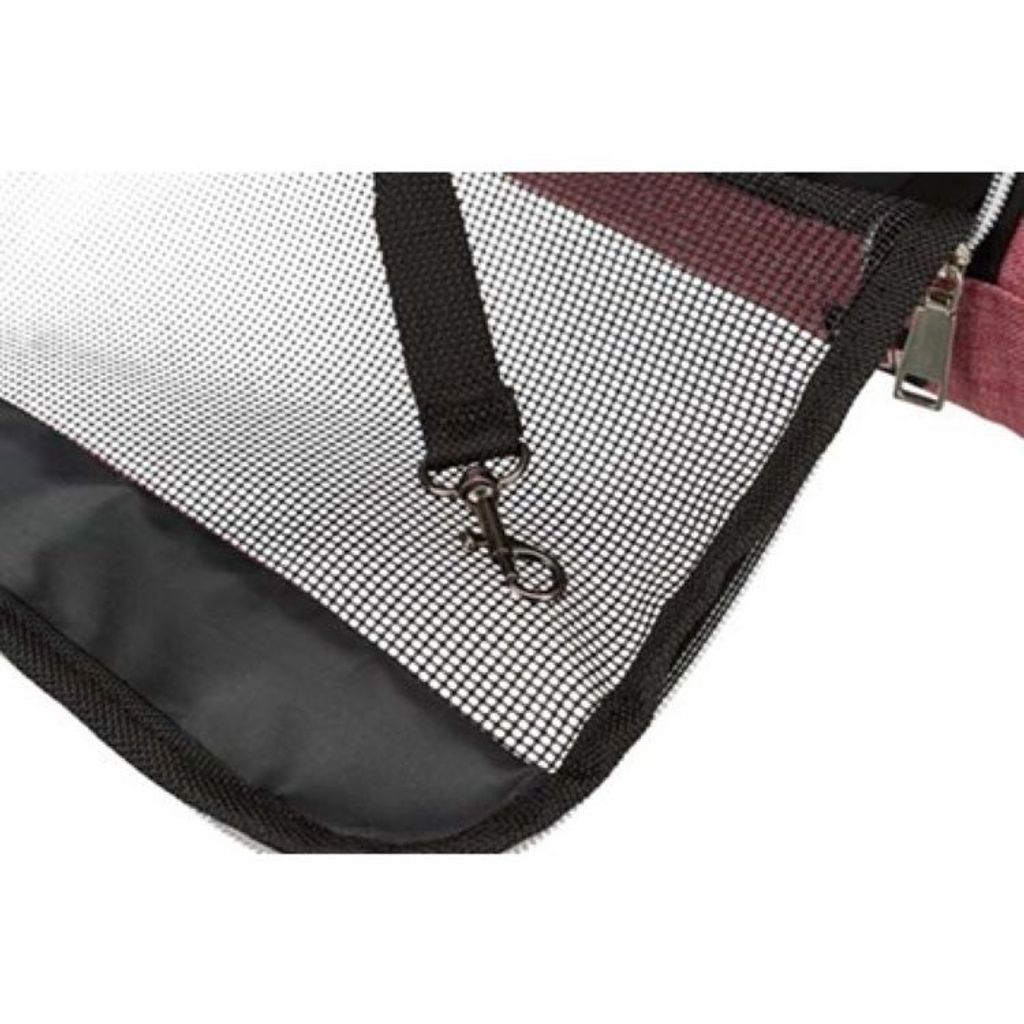 De praktiska metallförstärkningarna i väskans kanter gör att den håller sin form ordentligt, oavsett om väskan är öppen eller stängd. I kombination med den stabila bottenplattan kommer ditt djur att sitta lika bekvämt varje gång. Sidorna har mesh-nät som gör att luftcirkulationen alltid är bra i väskan.
