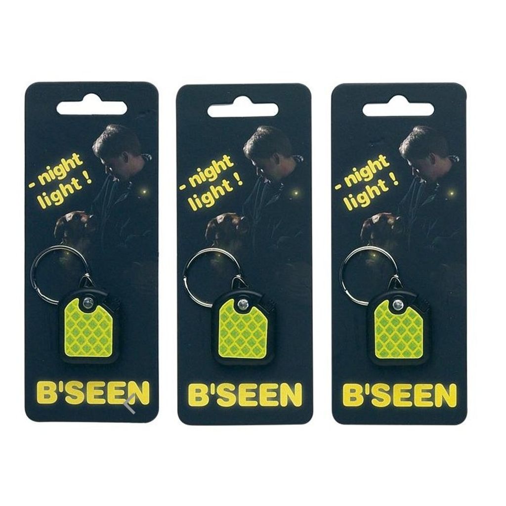 B´Seen Reflex är en liten LED-lampa på en reflexbricka som enkelt fästs på hundhalsbandet/ ägarens kläder. Tål fukt och kan användas i regn och snöväder.