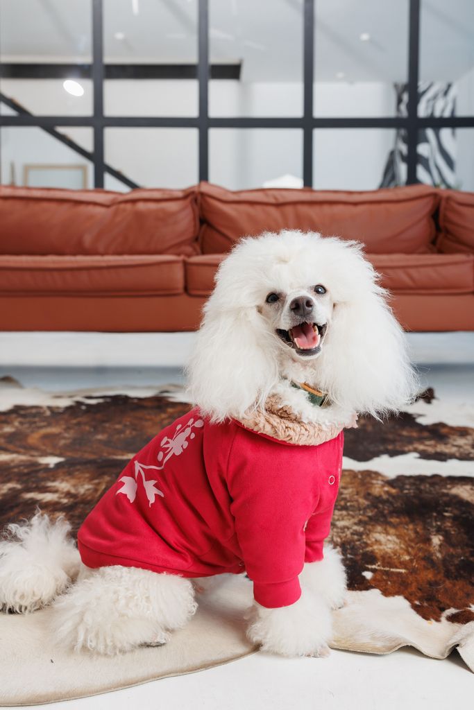 Den vinröda färgen med den bruna fuskpälsen ger din hund en höstlig och unik look.