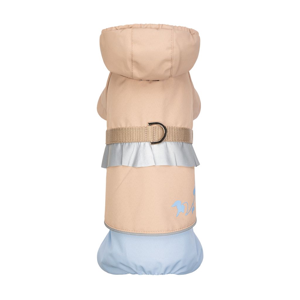 Regntäcket är tillverkat av vattentätt material som finns i trendiga färger som samtidigt har reflekterande detaljer vilket kommer göra dig som ägare tryggare med att veta att din hund syns ute i mörkret när ni går på promenader.