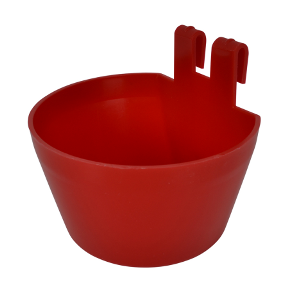 Vatten/Foderkoppen är tillverkad av hållbart plastmaterial som är UV-beständig, vilket gör att den kan användas både inomhus och utomhus.