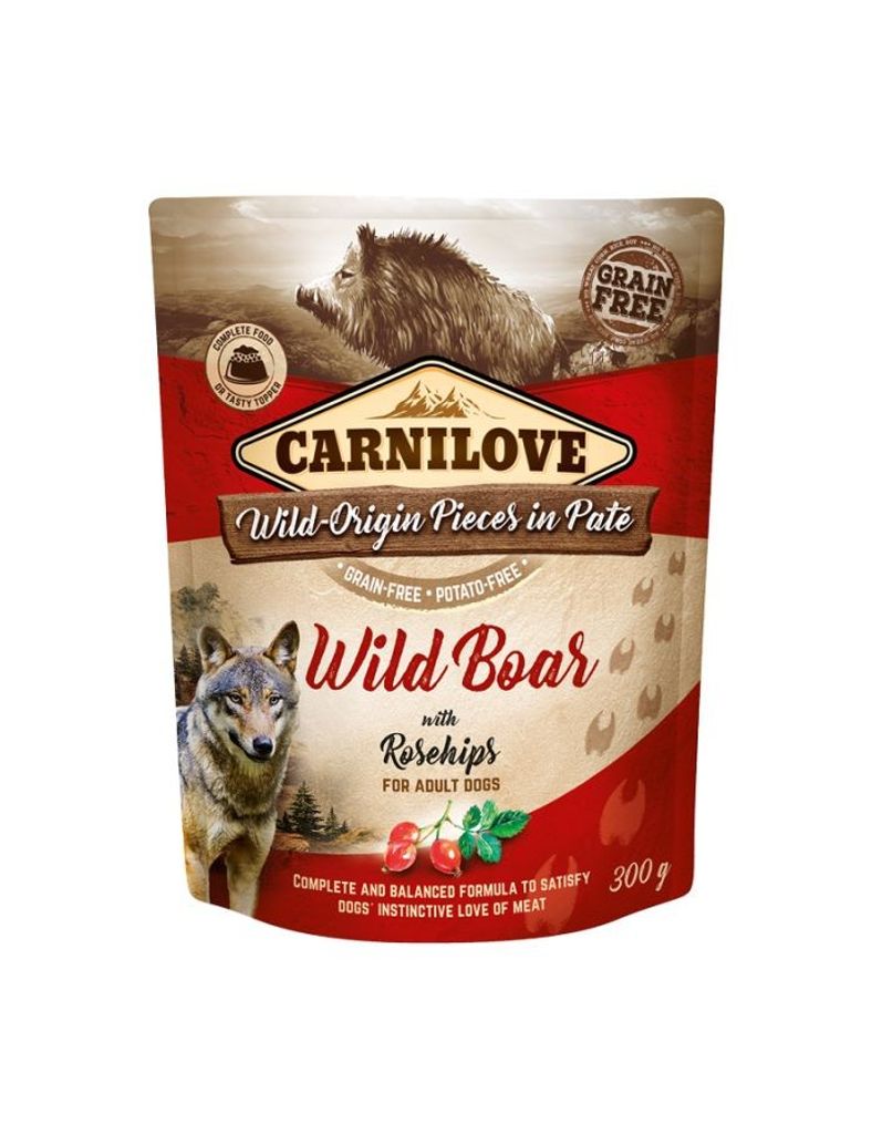 Beskrivning av CarniLove Dog Pouch Paté Wild Boar with Rosehips 300g