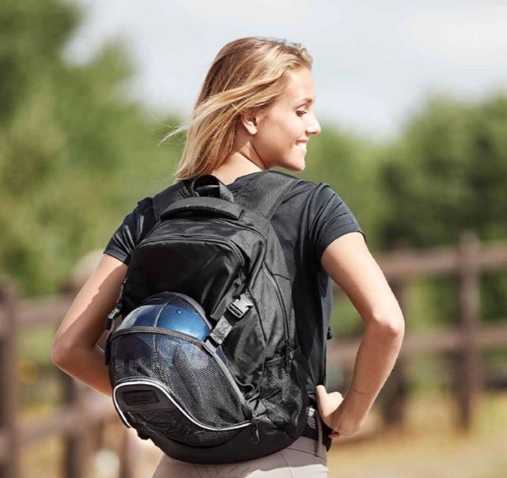 Snygg och praktisk ryggsäck i sportig design som rymmer alla dina saker, ridspö, vattenflaska och ridhjälm.