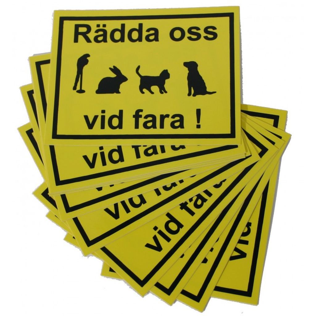 Informera räddningspersonal och grannar om att du har husdjur hemma som kan behöva hjälp ifall olyckan skulle vara framme. Lämplig att sätta på t.ex ytterdörren.