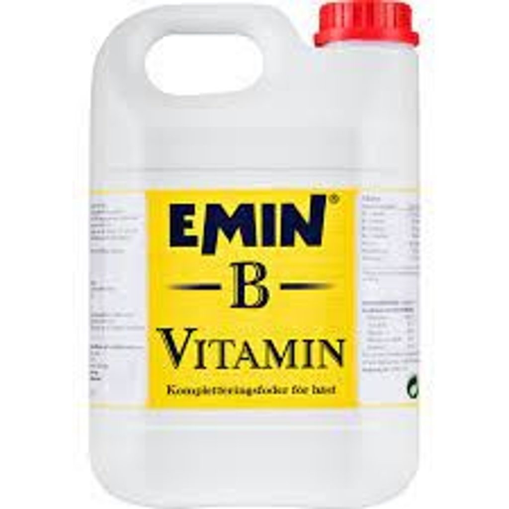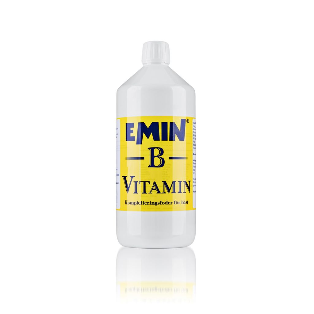 EMIN´s B-Vitamin är ett högkoncentrerat kompletteringsfoder som används när halten B-vitamin i det dagliga fodret inte räcker till. innehåller samtliga B-vitaminer. i en så hög styrka att vid en dagsgiva på bara 30 ml får din häst mer än 100% av dags behovet (RDI) av samtliga B-vitaminer