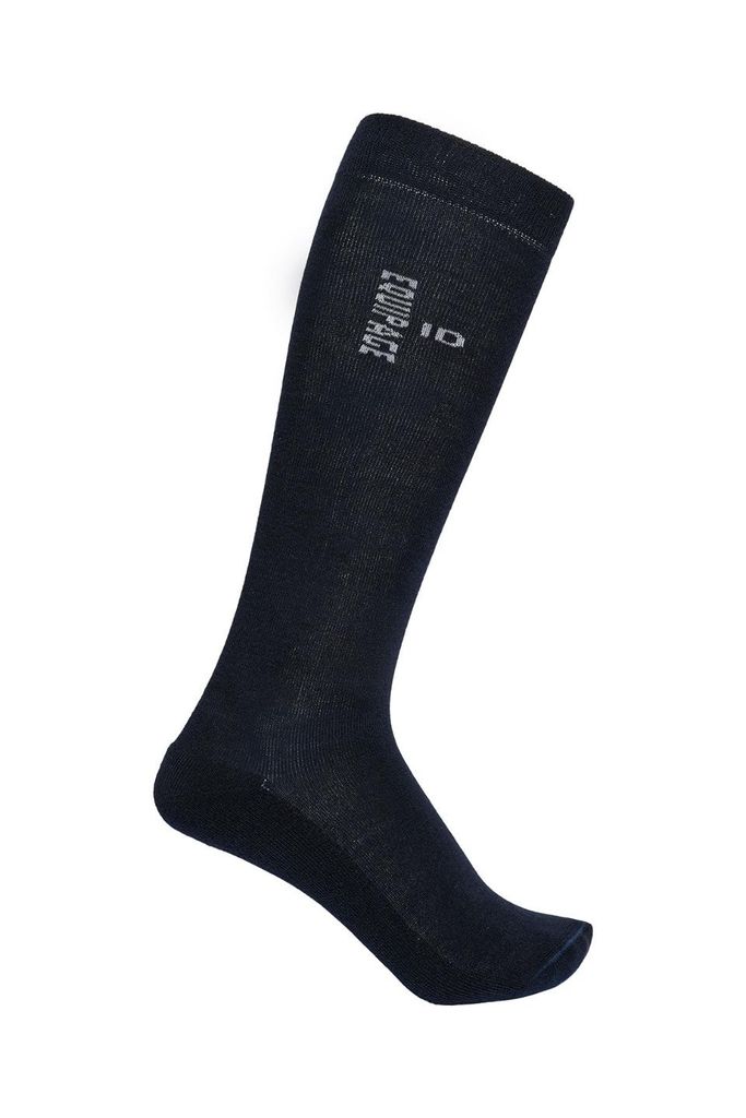 Klassiskt långa ridstrumpor i snygg marinblå färg detaljerade med Equipages snygga logga på vaden. Strumporna har fukttransporterande egenskaper som håller dina fötter svala och torra under hela ridpasset. Blandningen av ull och elastan gör att de både är funktionella och varma. För extra komfort har strumporna även en frottésula som gör skillnad när du är uppe på fötterna hela dagen.