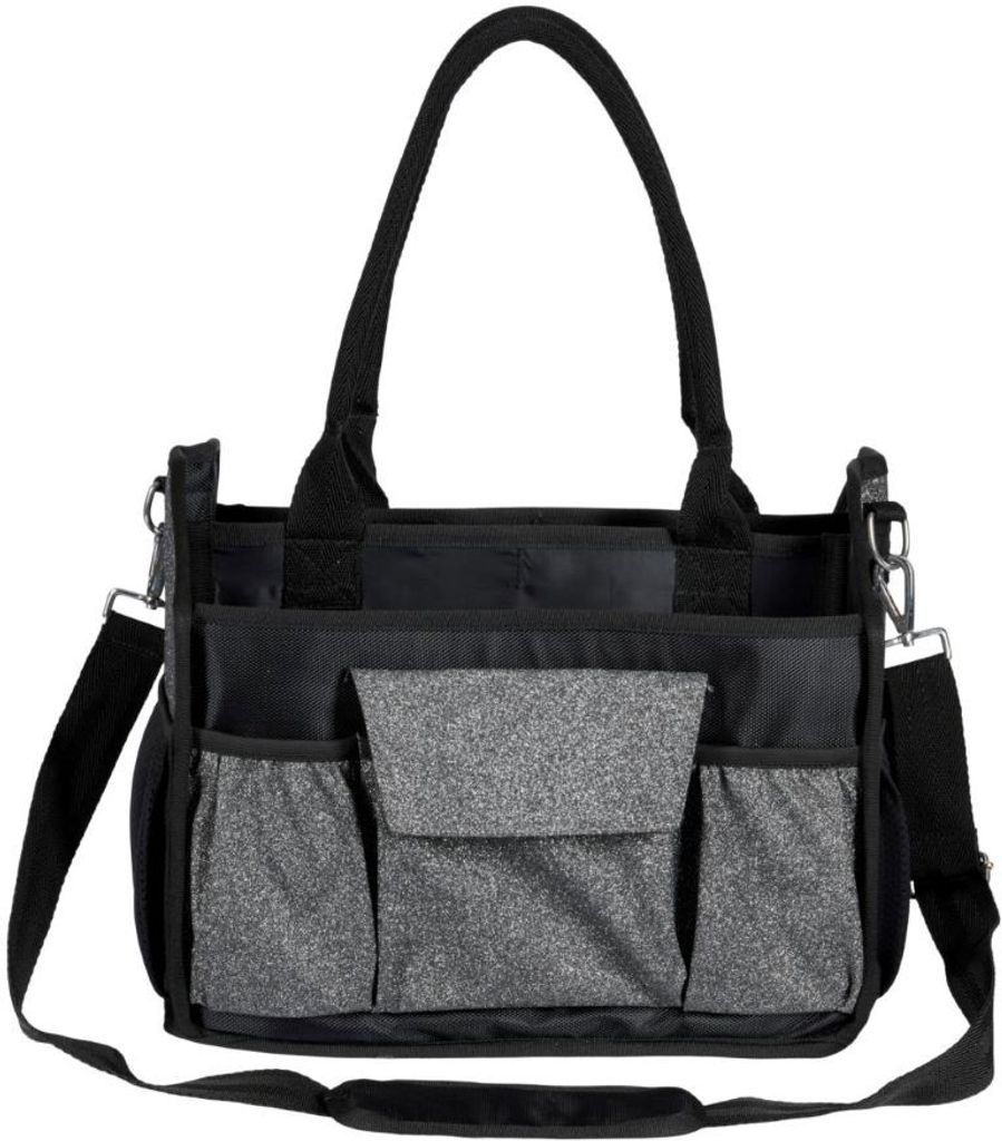 Ryktväska från Equipage med öppen topp. Designad med både mode och funktionalitet i tanken. De vackra glitterdetaljerna fulländar väskan och får den att stå ut, samtidigt som den rymmer allt du kan behöva med sina tre invändiga fack och nio öppna utvändiga fickor. Innerväggarna fästs med kardborreband.