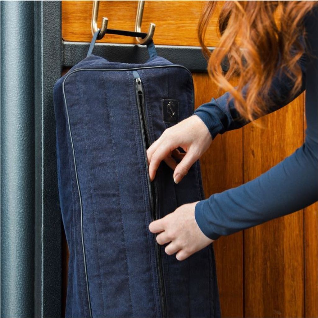 Denna tränsväska är inte bara praktisk, den är även stilren i sin design och står ut från mängden. Det mjuka manchestertyget på utsidan är både slittåligt och snyggt samtidigt som det skyddar ditt träns från smuts och damm.