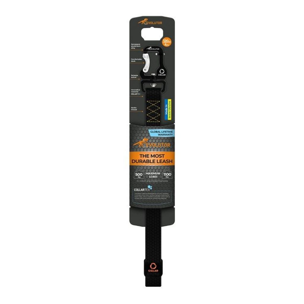 EVOLUTOR hundkoppel är tillverkade av COLLARTEX, ett innovativt kombinerat material utvecklat av COLLAR Company. Materialet består av ett inre förstärkningslager som tar upp huvudbelastningen, och ett yttre polymerskal som är behagligt att ta på. Trots sin otroliga hållbarhet är materialet mycket lätt, vilket minskar vikten på kopplet och gör det mer bekvämt att använda.