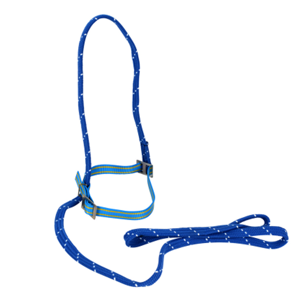 Fångstgrimma med grimskaft 2m Blå