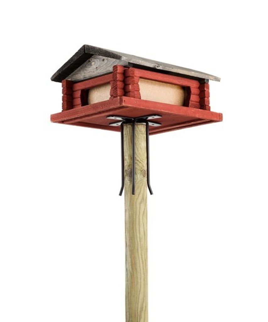 Beskrivning av Fäste till Fågelbord Stuga liten 15x15cm till stolpe ø5cm