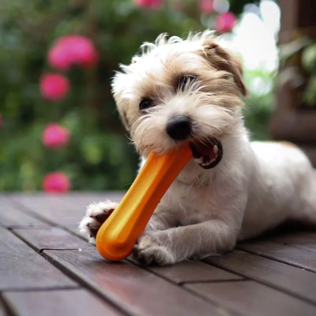 Fiboone är ett hållbart leksaksben som hjälper till att lindra stress hos hundar.