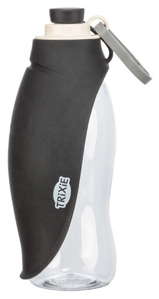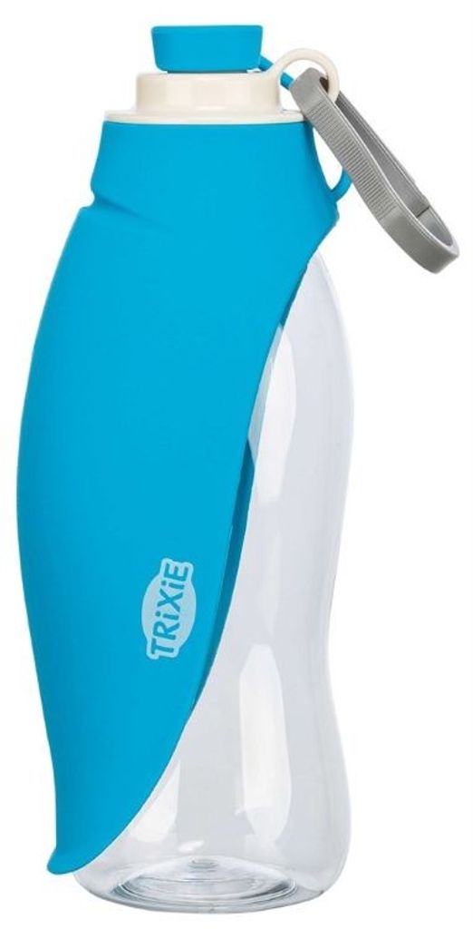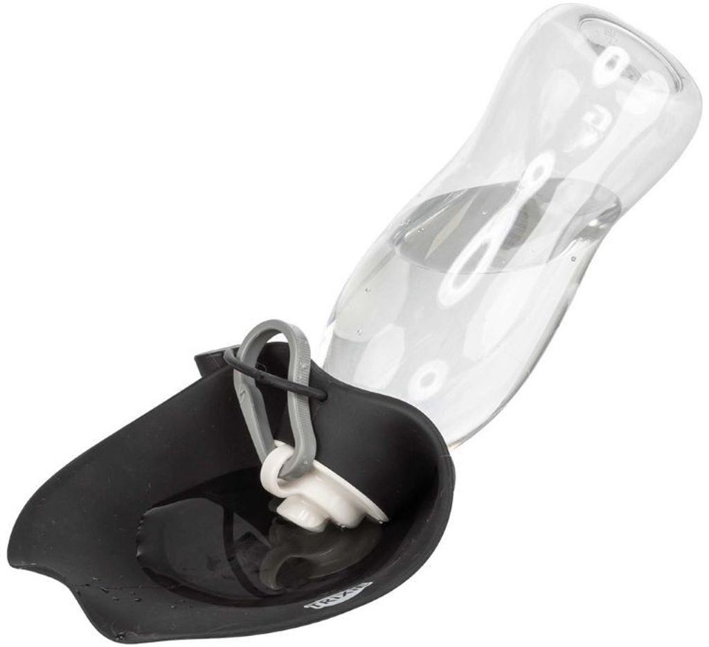 Praktisk vattenflaska som rymmer 0,55 liter och är speciellt utformad för att göra det enkelt att ge din hund vatten när ni är på språng. Vik bara ner det mjuka silikonskyddet, öppna locket – och du har en skål redo på några sekunder.