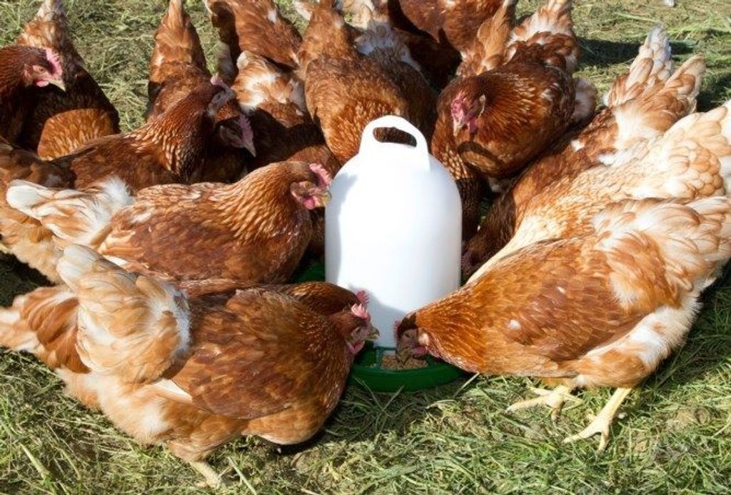 Foderautomat till vaktlar, dvärghöns eller kycklingar. Gjord i matsäker och robust plast med lång lisvlängd. Har ett bajonettlås och ett klämgaller för att förhindra matsvinn. Rymmer ca 1kg foder.