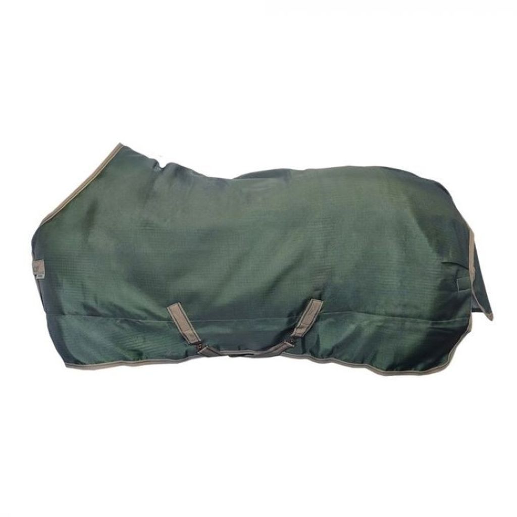 Täcket är tillverkat med ett 600 denier RipStop-skal som garanterar långvarig användning. 150 g fyllning som håller din häst varm och skyddad från blåst och regn.