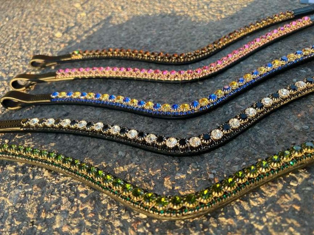 Finns i svart och brunt med flertalet olika färger på kristallerna så du enkelt kan välja vad som passar dig och din häst bäst.
