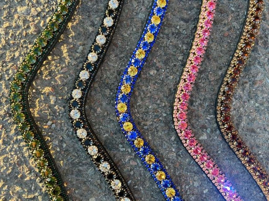 Kristallerna är slipade för största möjliga ljusreflektion så det kommer nästintill glittra om din häst. Dessutom är stenarna fastsydda individuellt för hand och varje pannband är ett rent hantverk.