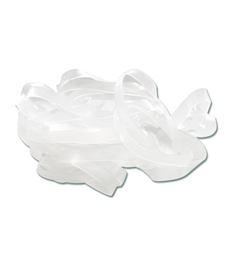 Beskrivning av Gummisnoddar extra breda 30gr Transparenta