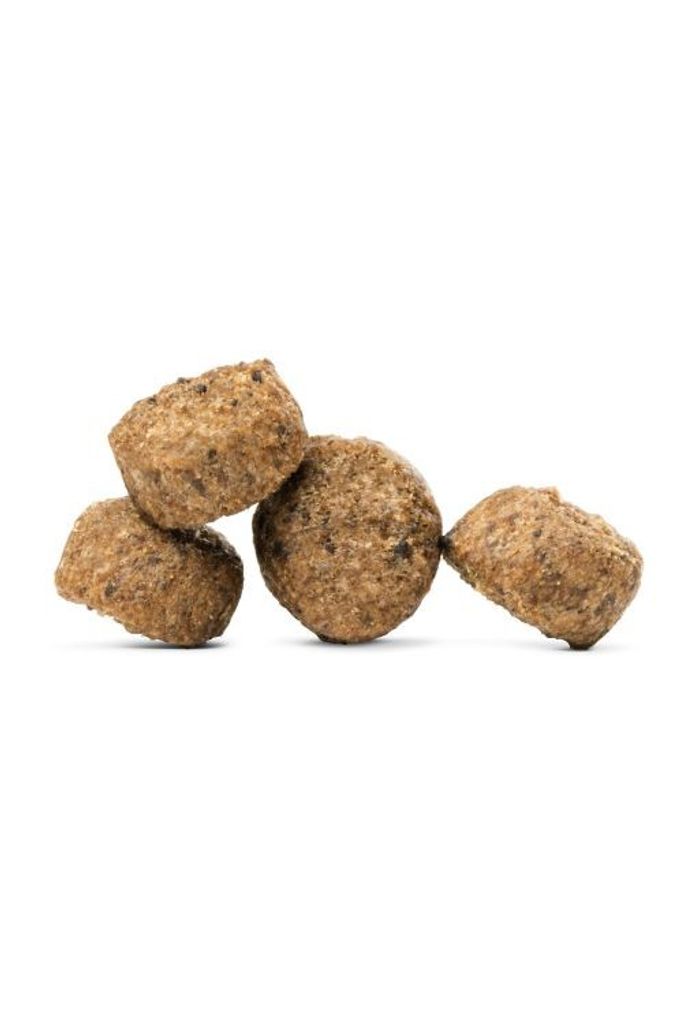 Fågelprotein** (23,5 %), korn, rismjöl, fettgrevar, köttmjöl, potatisprotein*, lignocellulosa, fiskmjöl, morot, linfrö, solrosolja, fågelfett, fiskhydrolysat*, kaliumklorid, rapsolja, jäst* (extrakt), hydrolyserat kollagen (0,2 %), musselkött* (0,2 %), glukosamin (0,2 %), mjölktistel, jäst*, natriumklorid, yucca schidigera*, cikoriapulver, tång*, kronärtskocka maskros ingefära (0,003 %), björkblad, nässla, kamomill, koriander, rosmarin (0,003 %), salvia lakritsrot, timjan (totala torkade örter: 0,13 %), *) torkad, **) torkad, delvis hydrolyserad