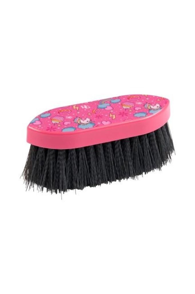 Snygg och praktisk rotborste i klassisk form och färgglatt tryck. Den mjuka och korta borsten hjälper till att borsta din häst ordentligt.