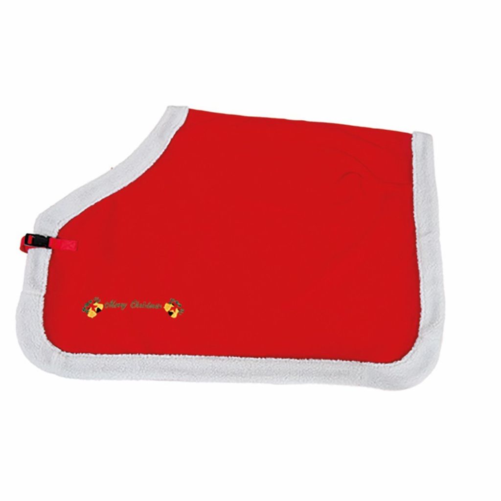 Klä din häst med detta kalasfina ländtäcke i härlig jul-röd färg.