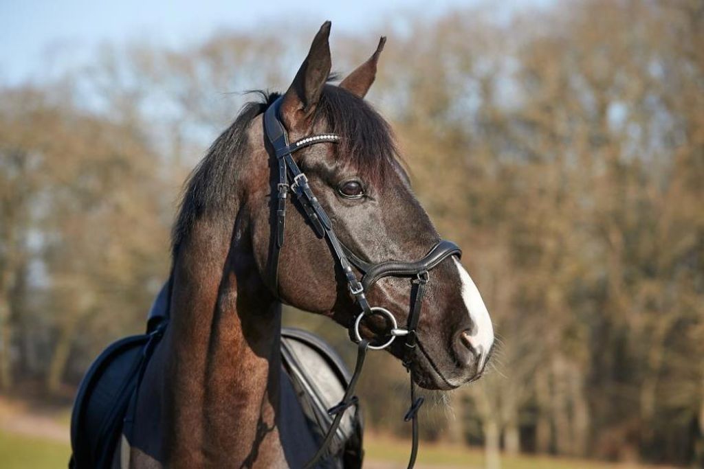 Svart träns med prestanda i läder från Horse Guard. Den ergonomiska utformningen och den vadderade nosgrimman gör att din häst inte får ett överdrivet tryck i ansiktet och minskar obehag.
