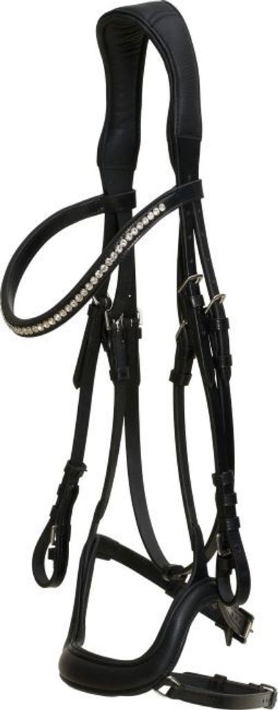 Svart träns med prestanda i läder. Ergonomiskt utformad och med vadderad nosgrimma och nackstycke för maximal komfort och optimal passform.