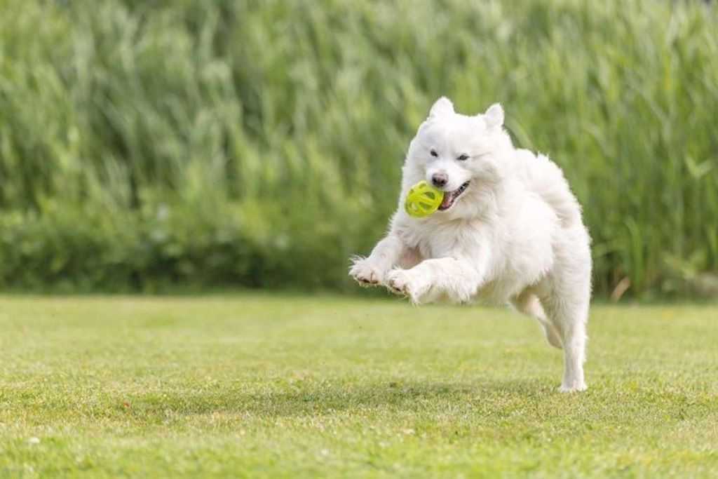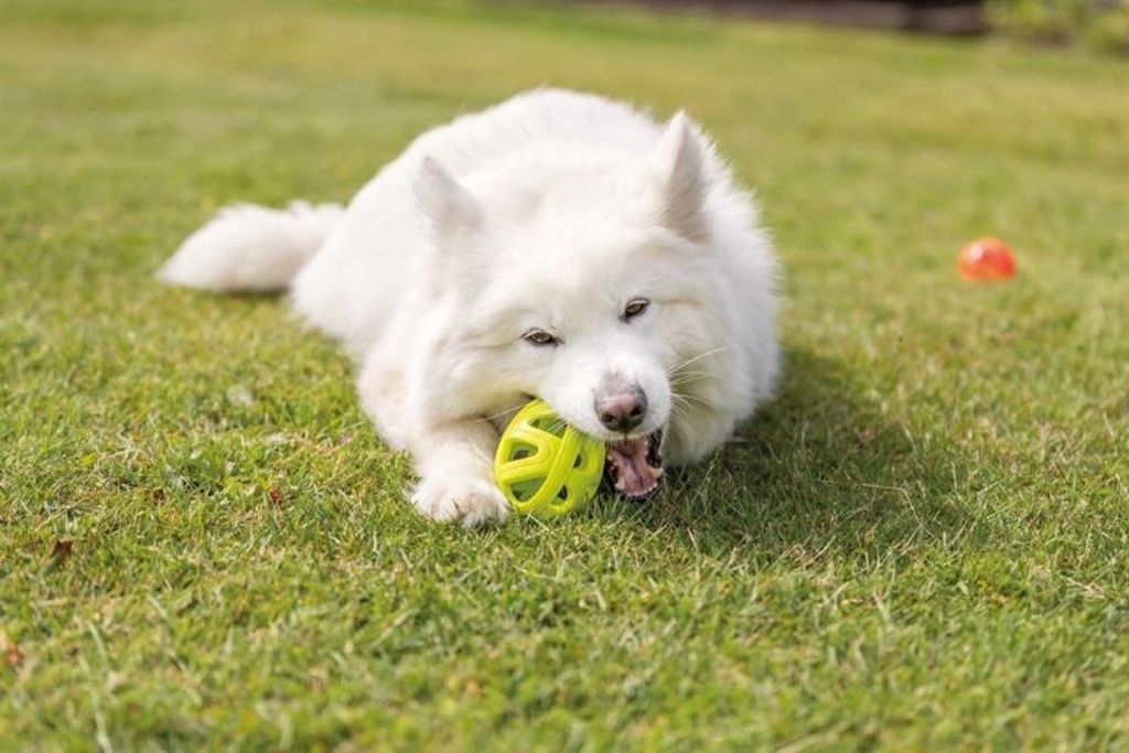 Designen gör att hunden kan andas fritt även när den har bollen i munnen, vilket gör leken både trygg och rolig.