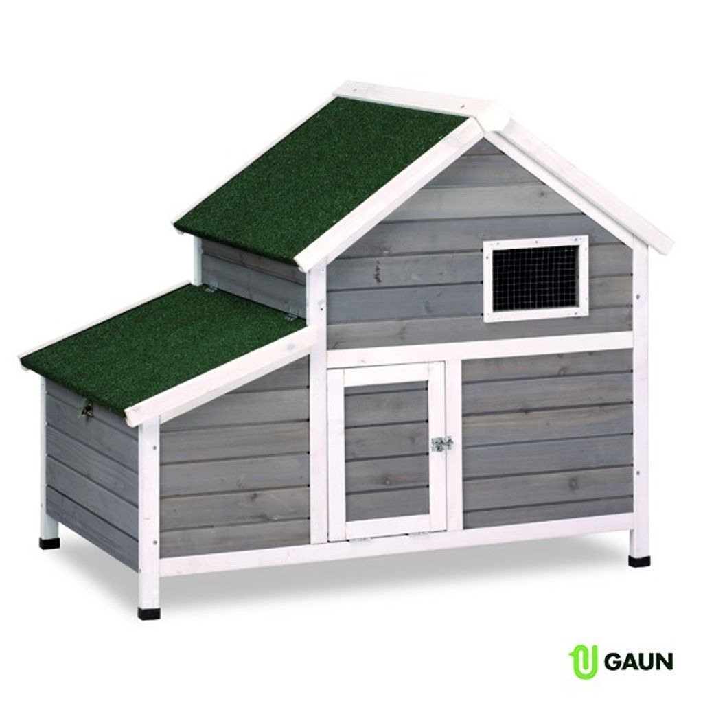 Stilrent och funktionellt hönshus som erbjuder dina höns en trygg och bekväm plats att vistas på. Bottenvåningen har ett öppet område för promenad och vila samt en bred dörr som ger enkel åtkomst vid rengöring och när hönsen ska släppas ut.