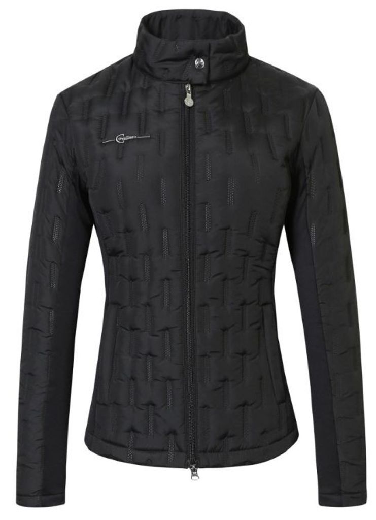 Denna damjacka kombinerar sportig design med lättviktig komfort, och är perfekt för aktiva dagar. Passar lika bra som ridjacka som en jacka för en dag i stallet eller i resten av vardagen. Materialblandningen av mikrofiber och kviltat tyg gör den både andningsbar och funktionell. Jackan har två handvärmarfickor med dragkedjor och en ståkrage med knapp för extra skydd.