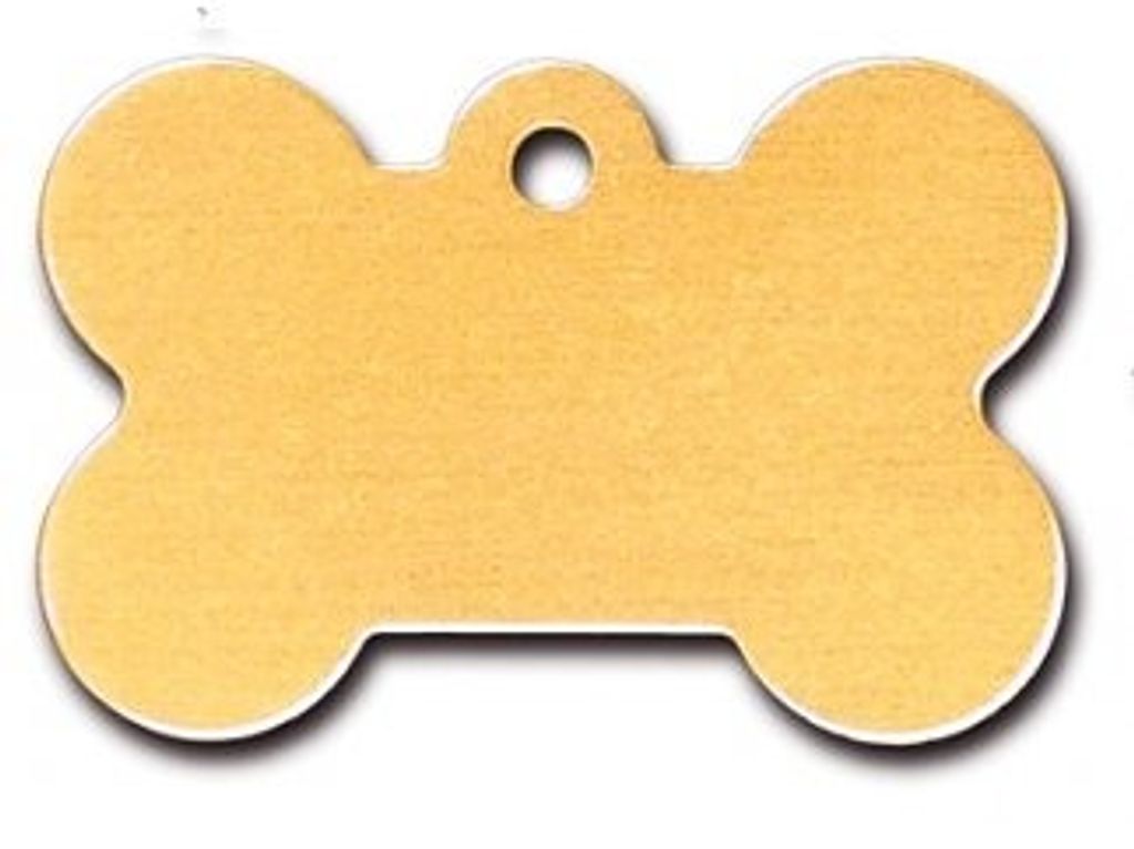 ID-Bricka i storlek L. Snygg guldig färg och form av ett ben. Perfekt till hundens halsband.