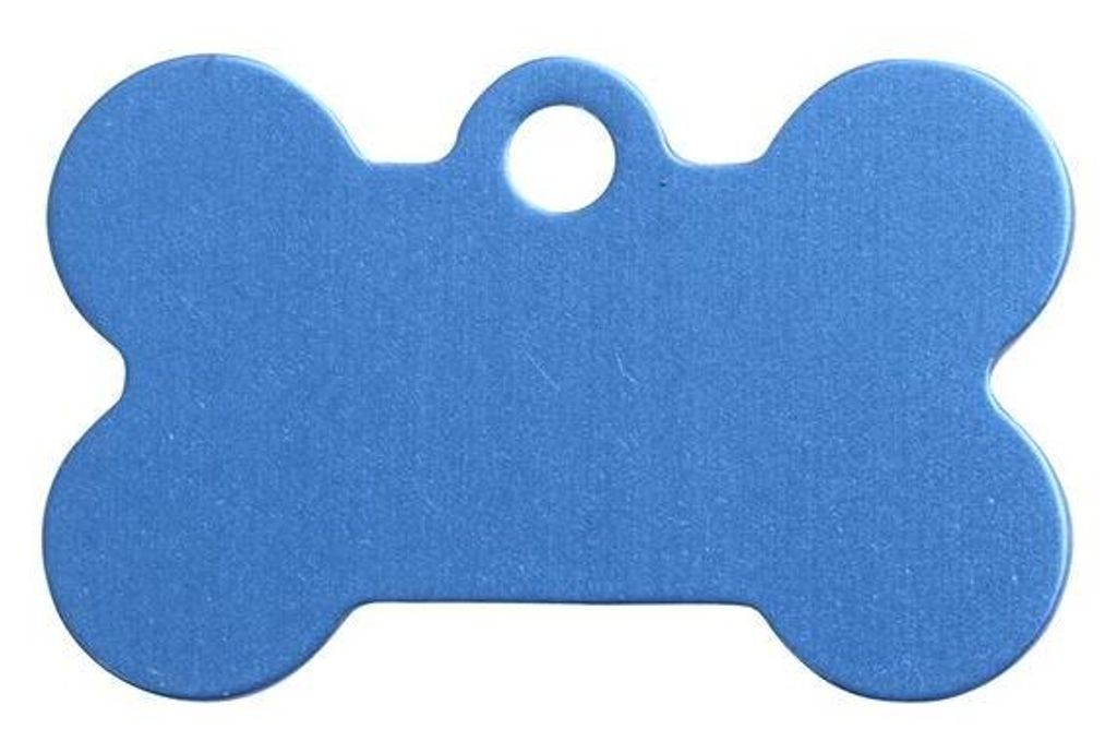 ID-Bricka i storlek S. Härlig blå färg och form av ett ben. Perfekt till hundens halsband.