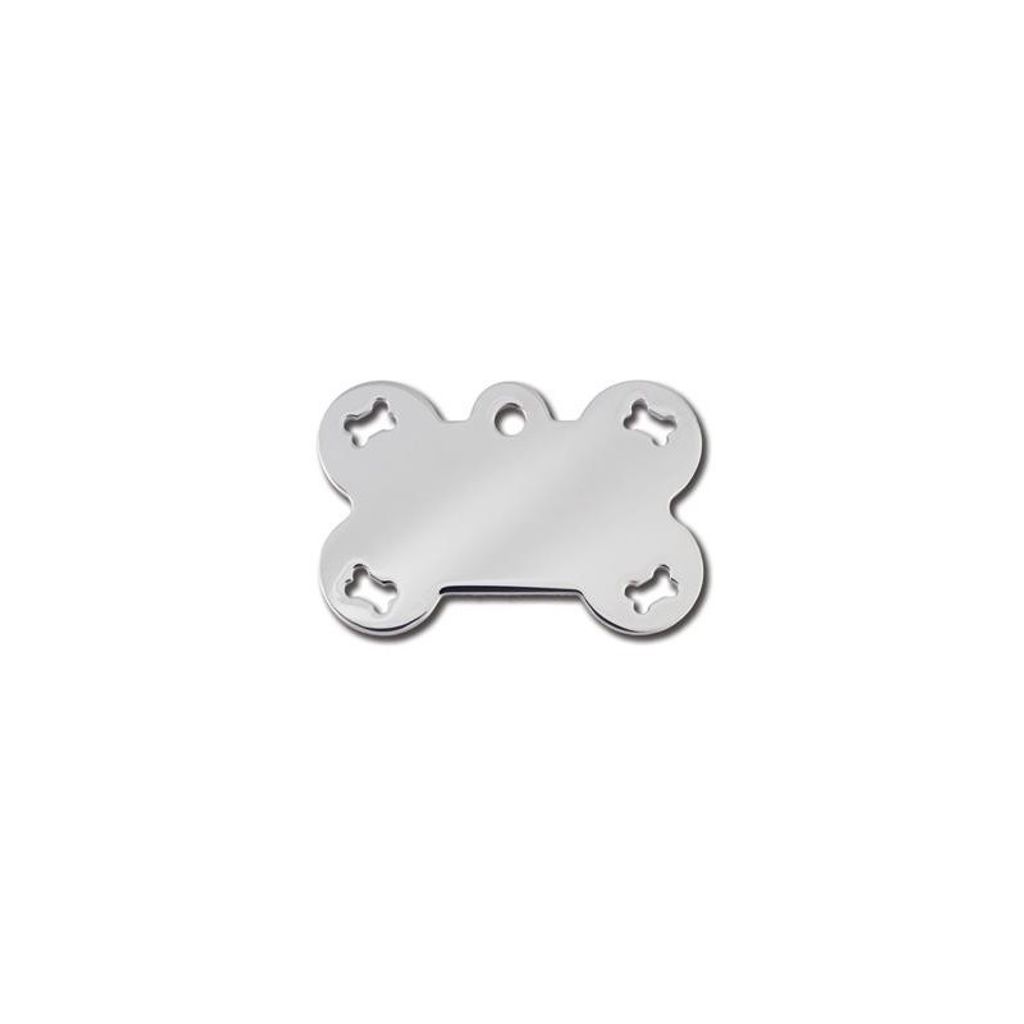 ID-Bricka i storlek L. Klassisk silvrig färg och form av ett ben. Perfekt till hundens halsband.