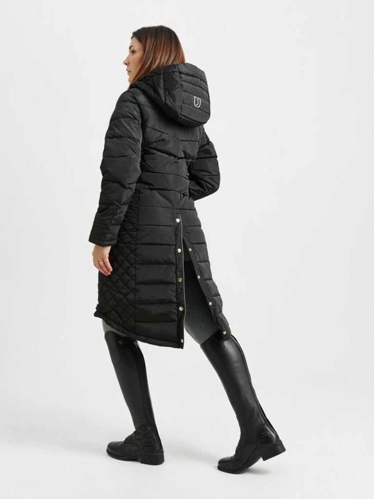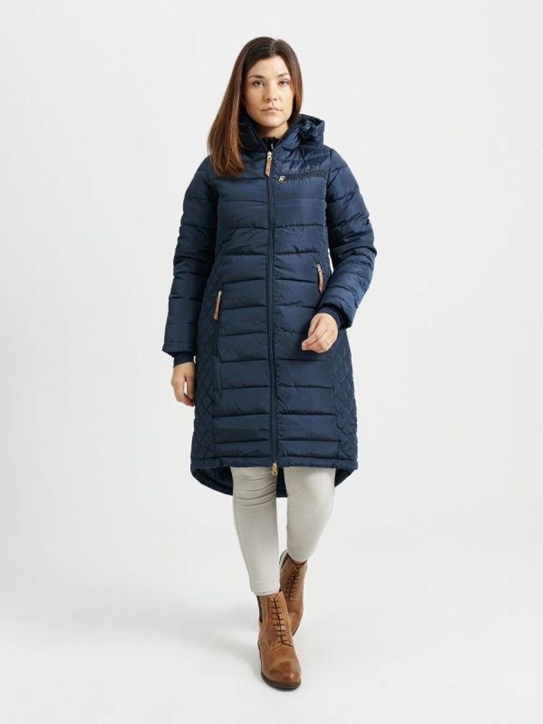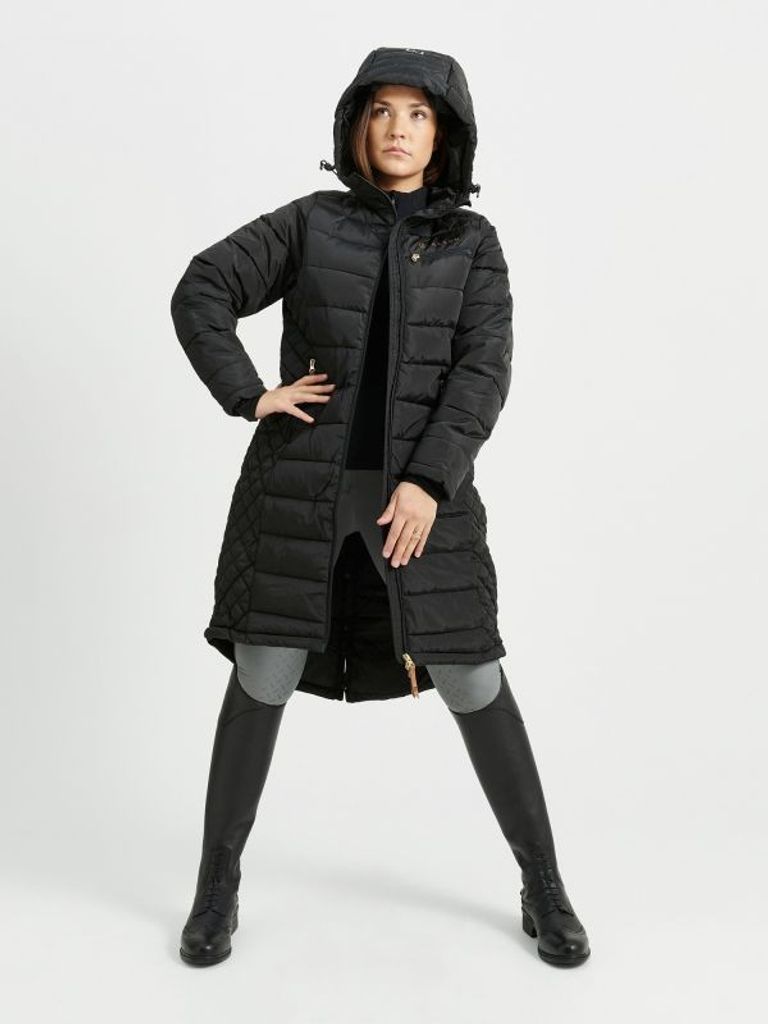 Knälång figursydd kappa med en stilren design som passar både i stallet och på stan. Syntetfyllning som liknar dun i värme och känsla. Lycramuddar vid armslut och BIONIC-FINISH® ECO-impregnering vilket gör att kappan håller dig varm såväl höst och vår som under vintern.