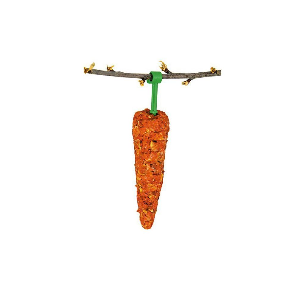 Hängande gnagpinne med torkad morot.