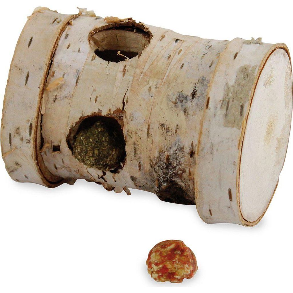 Naturlig leksak av hårt träslag för gnagare vilken främjar intelligensen. Lägg några JR Grainless Drops i trärullen och skruva ihop den. Låt ditt djur leka med den. Djuret kommer omedelbart att försöka få ut så många godisar som möjligt genom att förflytta den. Innehåller en påse JRGrainless Drops 40 g.