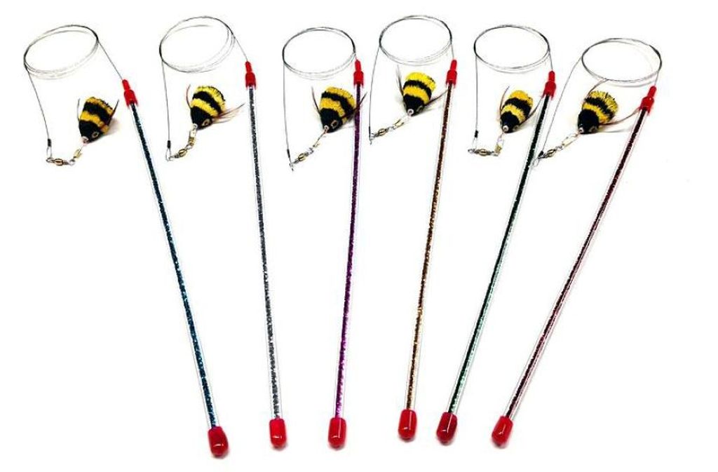 Kattspö med metallvajer. Vajern gör att tafsen på änden studsar härligt och oförutsägbart, vilket lockar din katt till längre hälsosamma och aktiva lekstunder samtidigt som dess instinkter blir tillfredsställda.