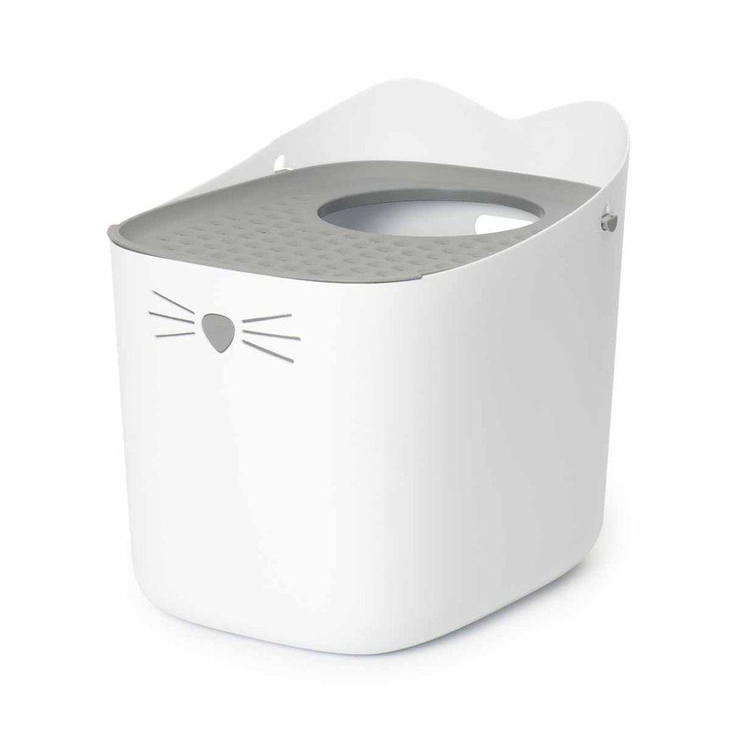 Kattlåda med en snygg och sömlös design som garanterar att ingen sprayning eller läckage kommer ut på väggar eller golvet. Öppning på toppen.
