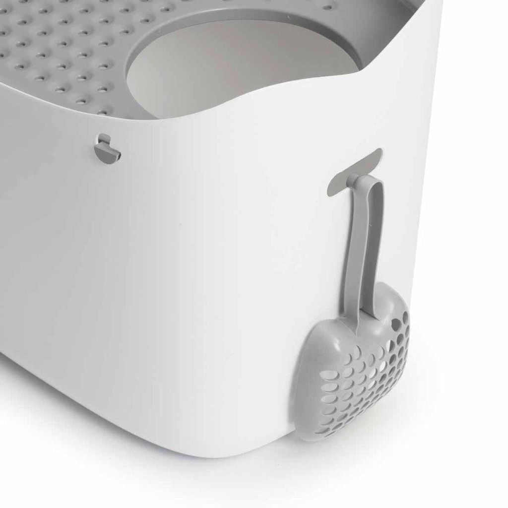 Lätt att rengöra, och för din katt att använda. Plats för att hänga spaden på baksidan.