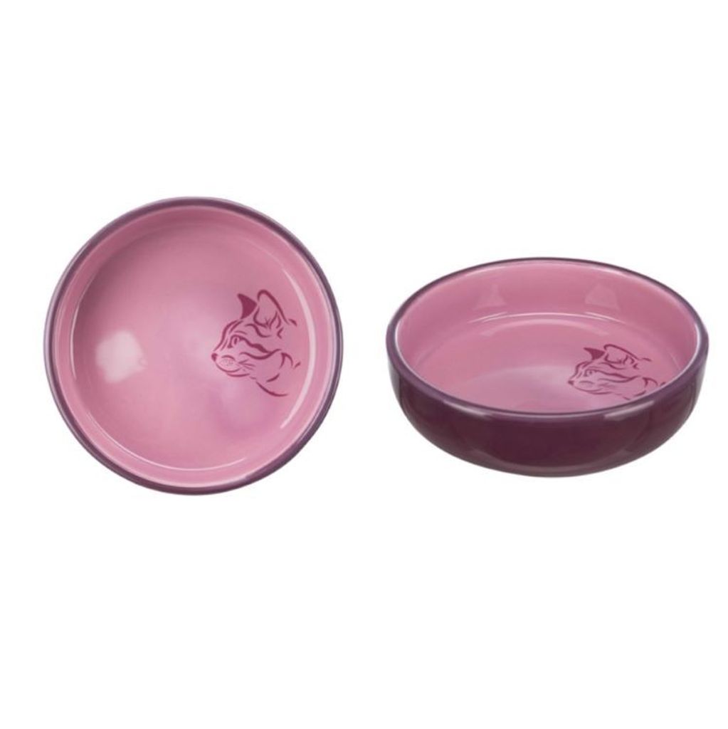 Keramikskål med vackert tryck och fina färger. Perfekt för trubbnosiga katter och kattungar.