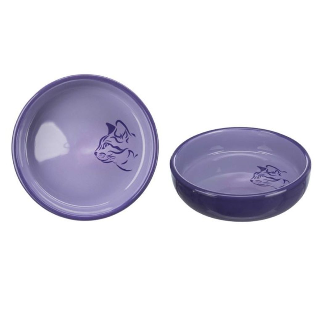 Skål tillverkad i tålig keramik med vackert tryck och fina färger. Då skålen är grund passar den perfekt även för katter med kort nos, såsom perser, eller för kattungar.