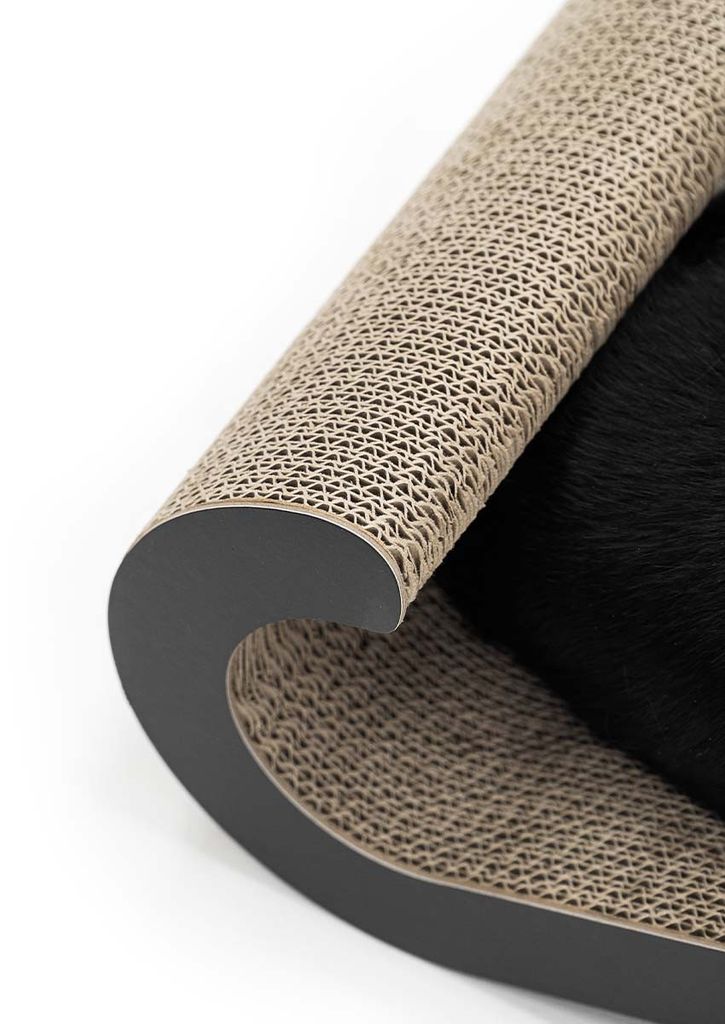 Den är gjord på återvunnen kartong vilket är miljövänligt, då får du en bra känsla samtidigt som din katt får en rolig sak att leka på.