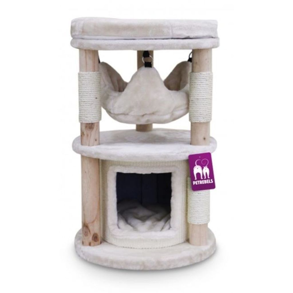 De lyxiga plyschbäddarna är mjuka och gosiga och kommer garanterat bli kattens nya favoritplats (förutom hos dig). Dessutom finns det en mysig sovgrotta där katten kan ligga mer ostört.