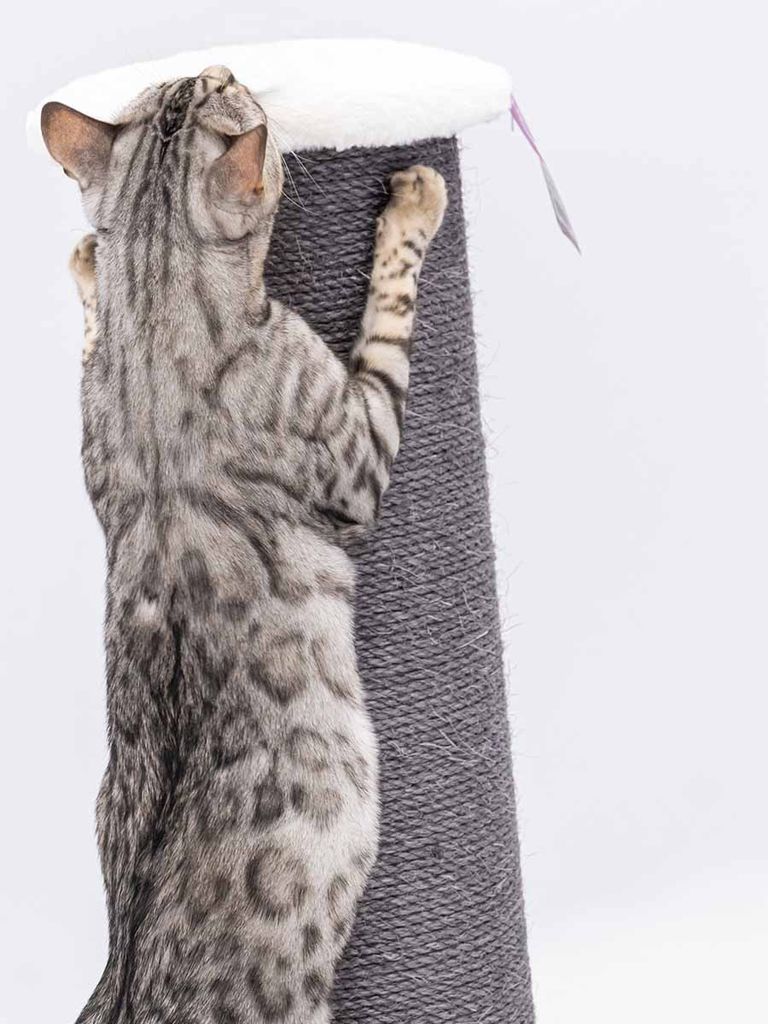 Det här är en klöspelare som har en extra stor och kraftig bottenplatta för att den inte ska åka ner i golvet när dina katter klöser. Den passar alla katt typer Maine Coon, Norsk skogkatt och Ragdoll vilket är perfekt. Den har ett tjockt sisalrep på 6mm, den har alltså styrka och hållbarhet vilket är perfekt för aktiva katter som roas vardagligen.