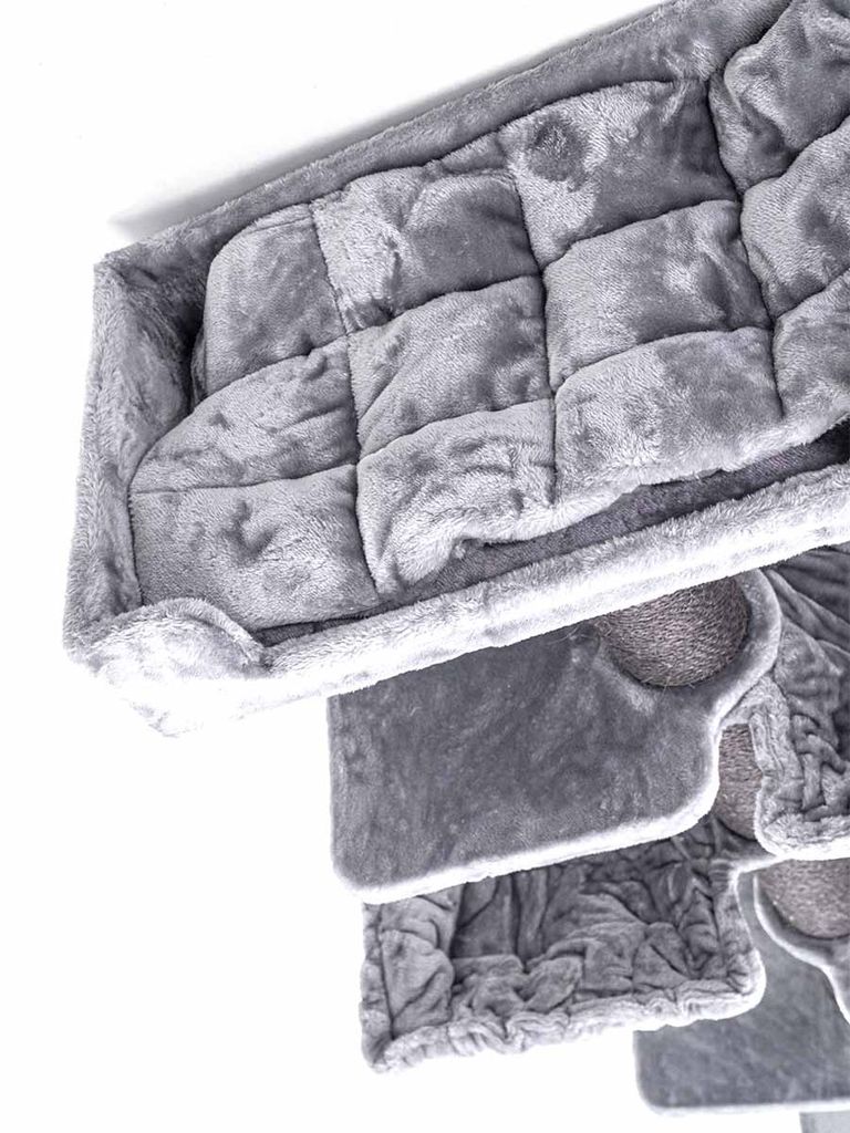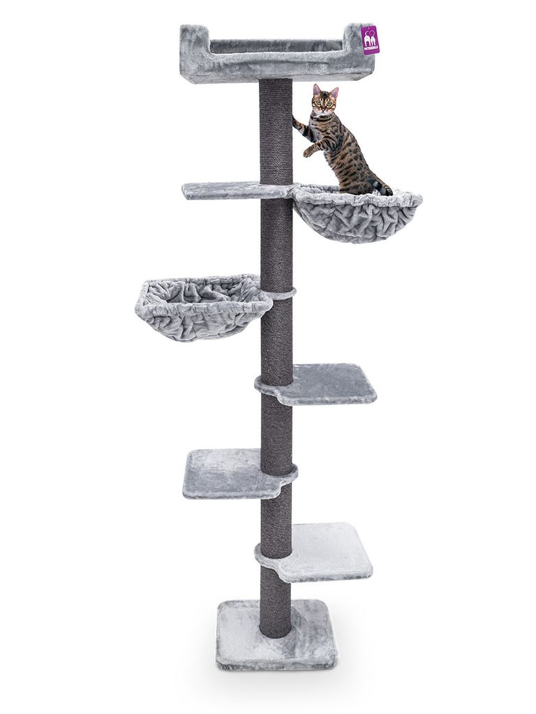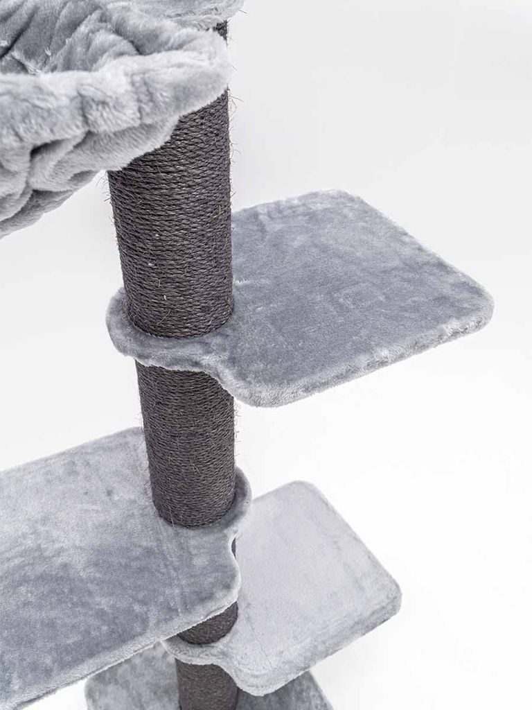 Längst upp på klösträdet är det en stor och mjuk korg din katt kan ligga i och antigen vila eller spana på omgivningen vilket många katter uppskattar. Längst trädet finns det två hängmattor som är mysiga för din katt och även plattor där din katt kan sitta och ta sig upp till toppen.