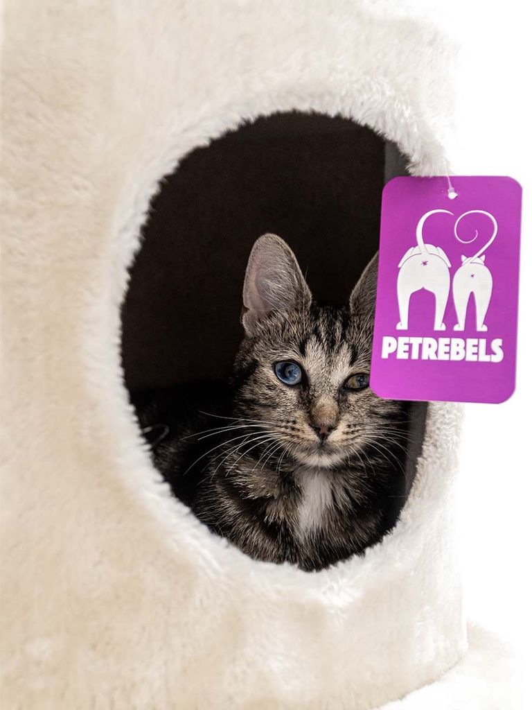Klösträdet har tjocka klöspelare som är 9 cm i diameter vilket passar bra till klöslek för din katt. Det finns en super mysig hängmatta din katt kan vila i för att få en god sömn men också en grotta som din katt kan välja att sova i för att få vara ensam men också i en mörkare miljö. Din katt kan klättra högst upp för att få syn över hela rummet, vilket är en grej många katter uppskattar.