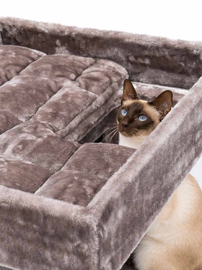 En extra stor sammetsmjuk liggkorg där dina katter kan sova skönt med ett mjukt och behagligt underlag.
