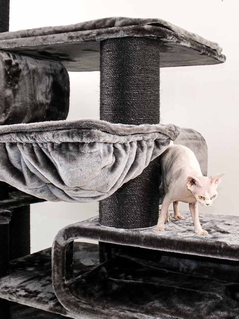 Det finns mysiga hängmattor, vilokorgar och mjuka hyllpan som gör att de är gott om plats för var och en för både lek och återhämtning. Norwegian 200 är särskilt väl anpassad för hushåll med flera katter samt för större och tyngre katter som behöver extra stabilitet.